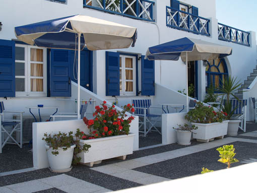 С балкона открывается захватывающий вид на остров, море и Кальдеру.